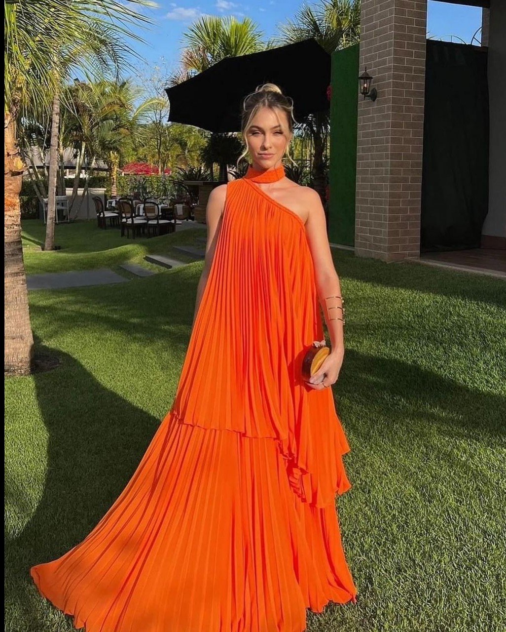 Para as mulheres: vestidos longos ou midi, usando tecidos nobres e complementando com salto alto, acessórios refinados, maquiagem elaborada e penteado arrumado para um visual sofisticado e alinhado à ocasião.
